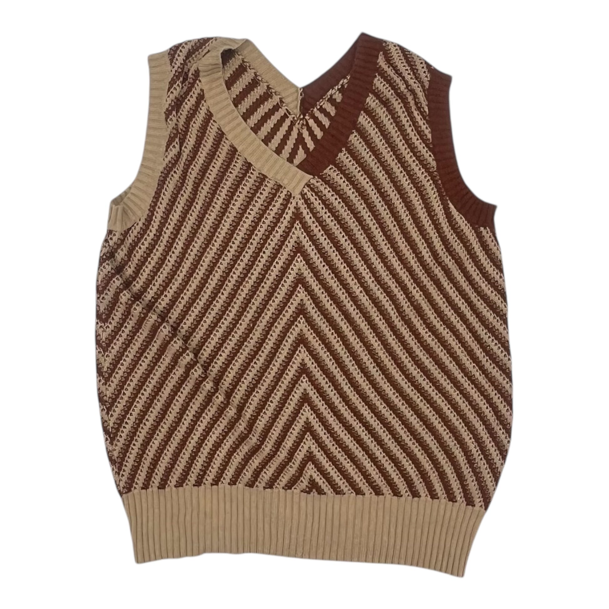 Vest Sweater By Clothes Mentor In Brown & Tan, Size:L