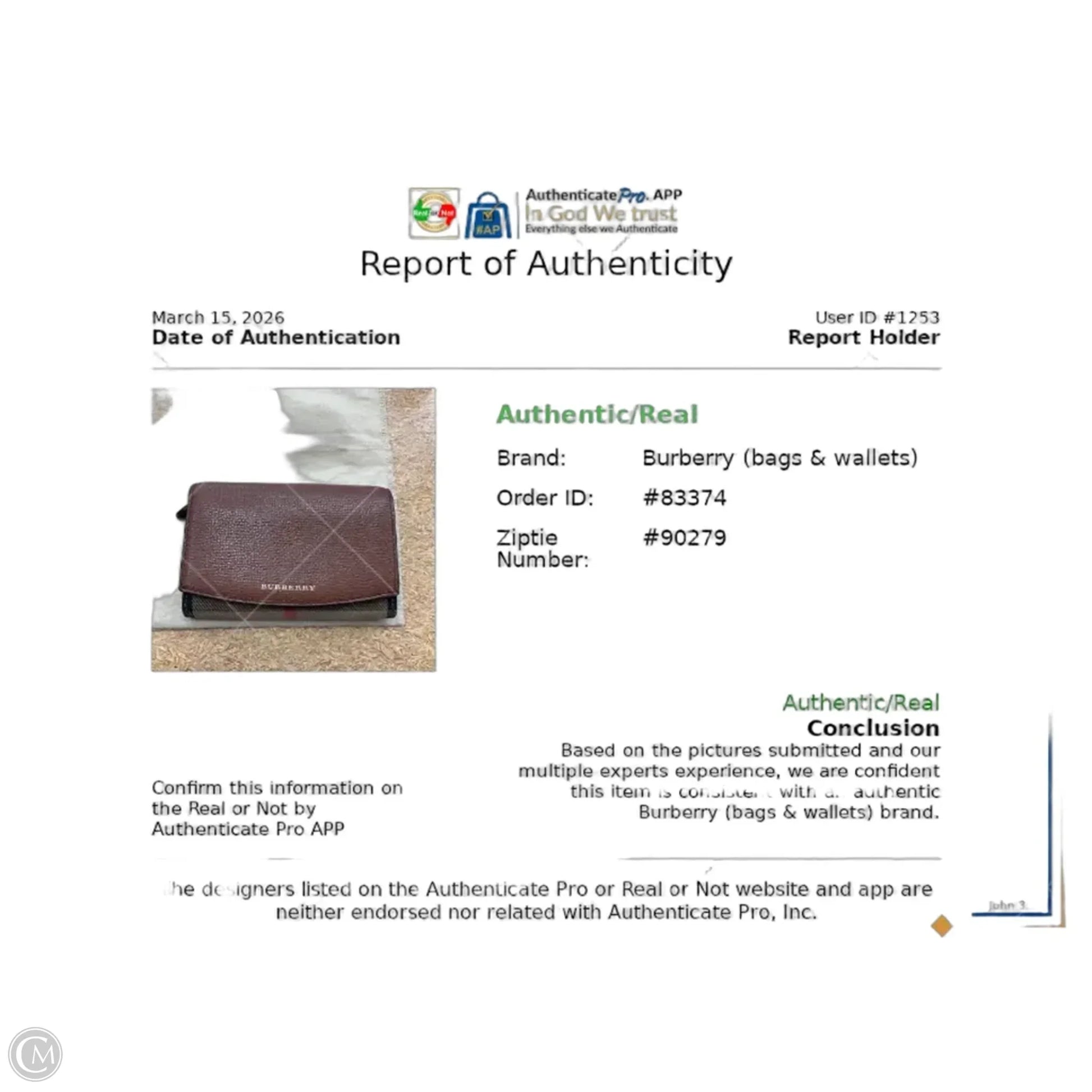 Wallet Luxury Designer By Burberry, Size: Medium