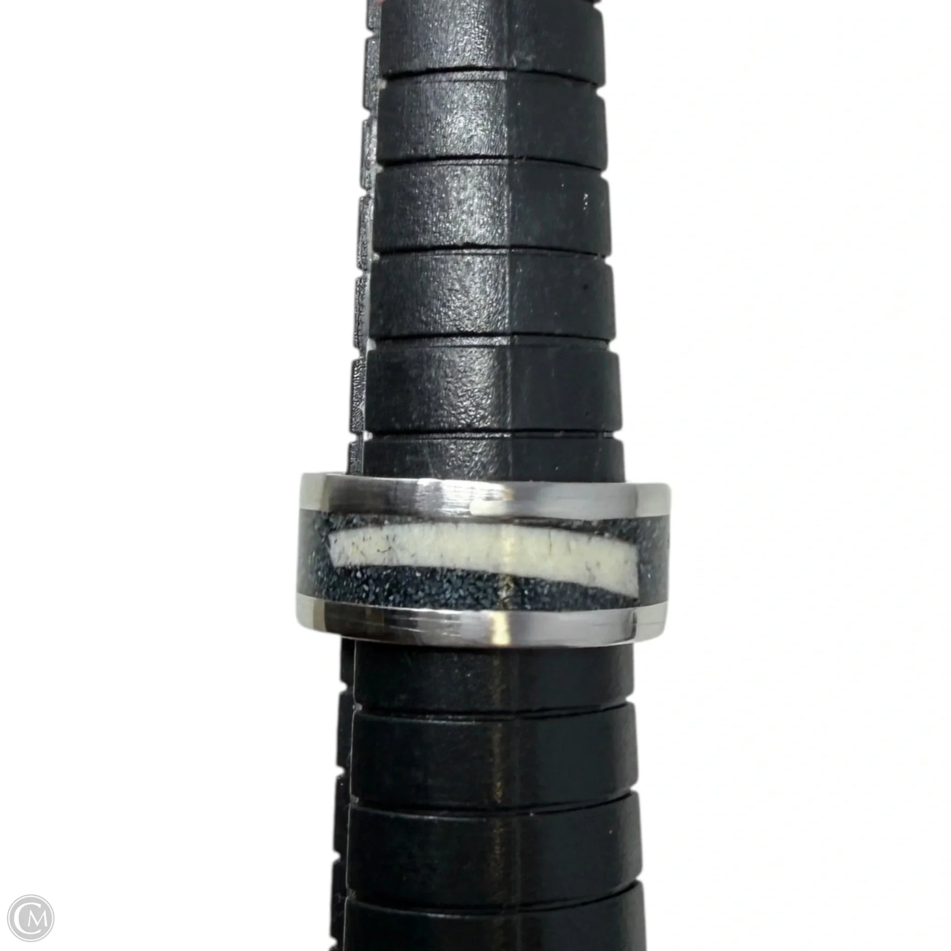 White Tail Antler & Black Quartz Inlay Band Ring, Size: 6
