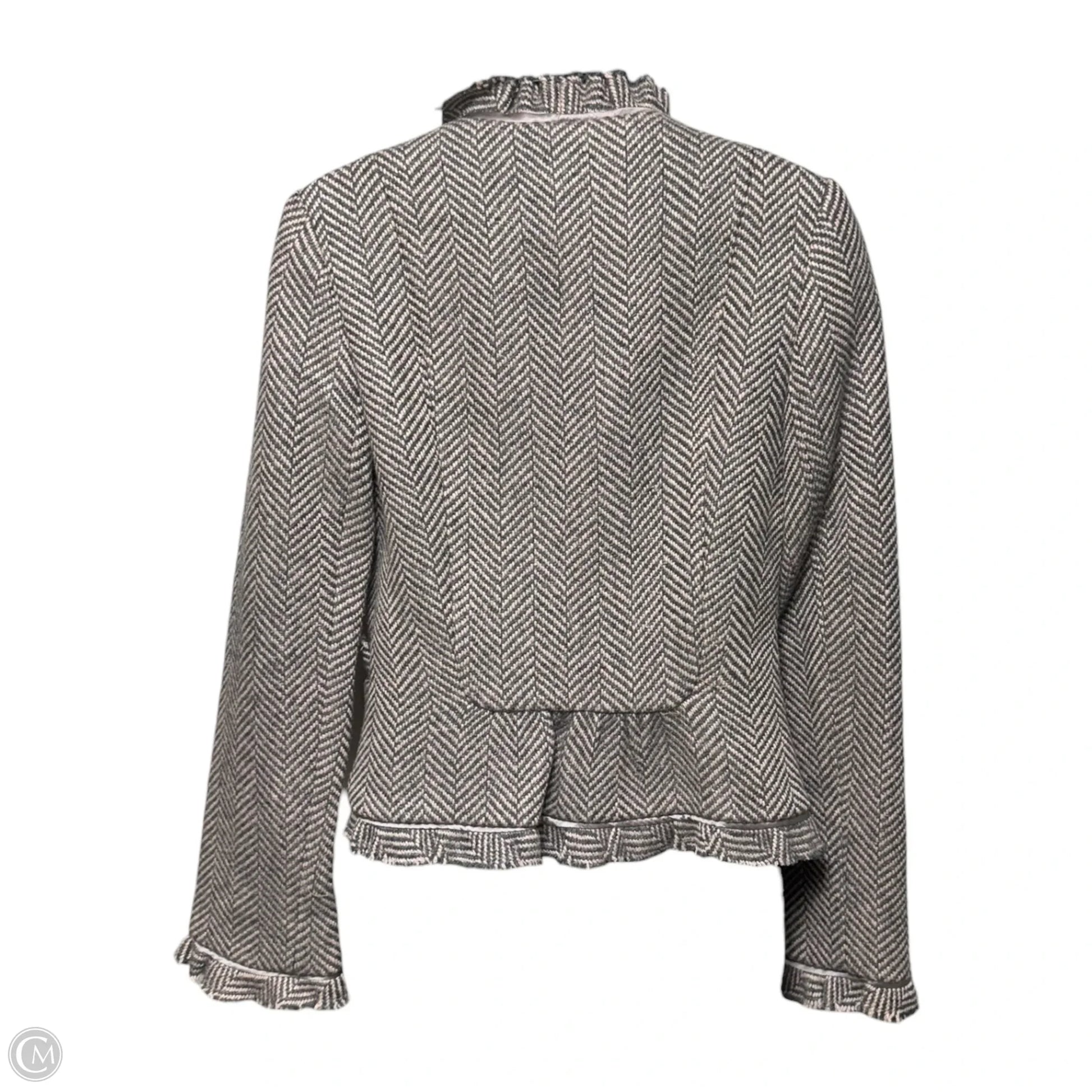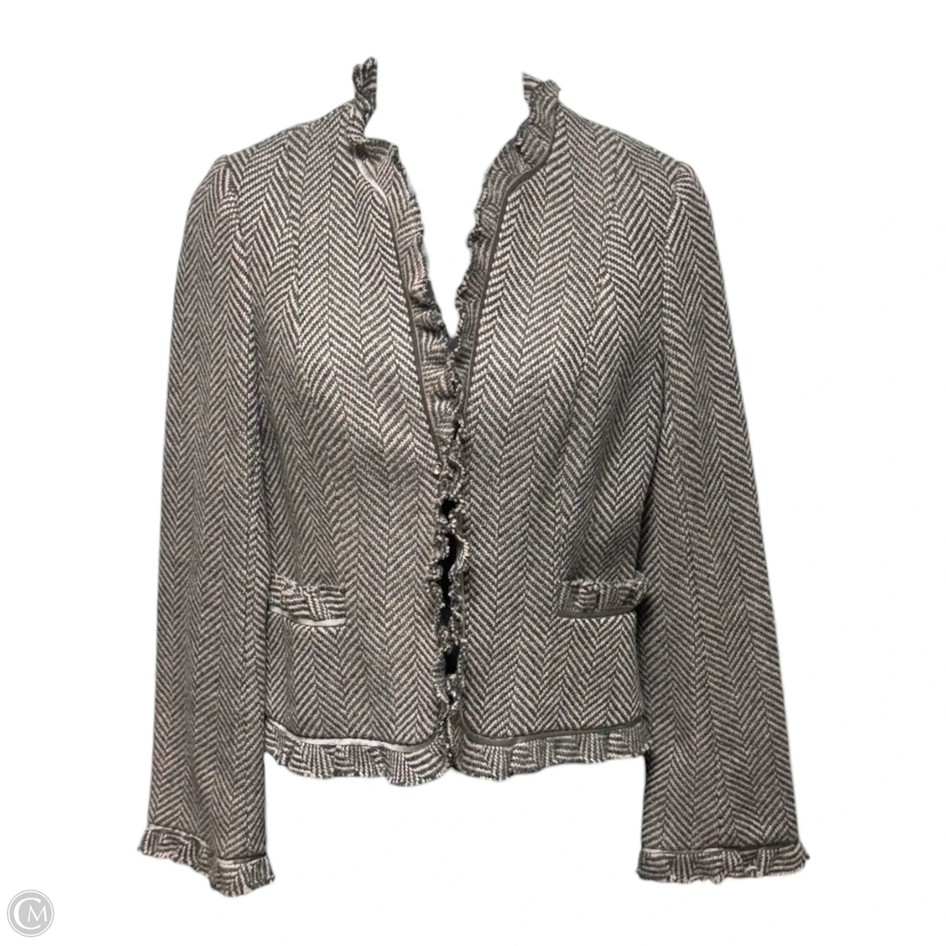 Vintage Y2K Silk Trim Wool Blend Herringbone Tweed Jacket By Rebecca Taylor In Grey & Pink, Size: 4