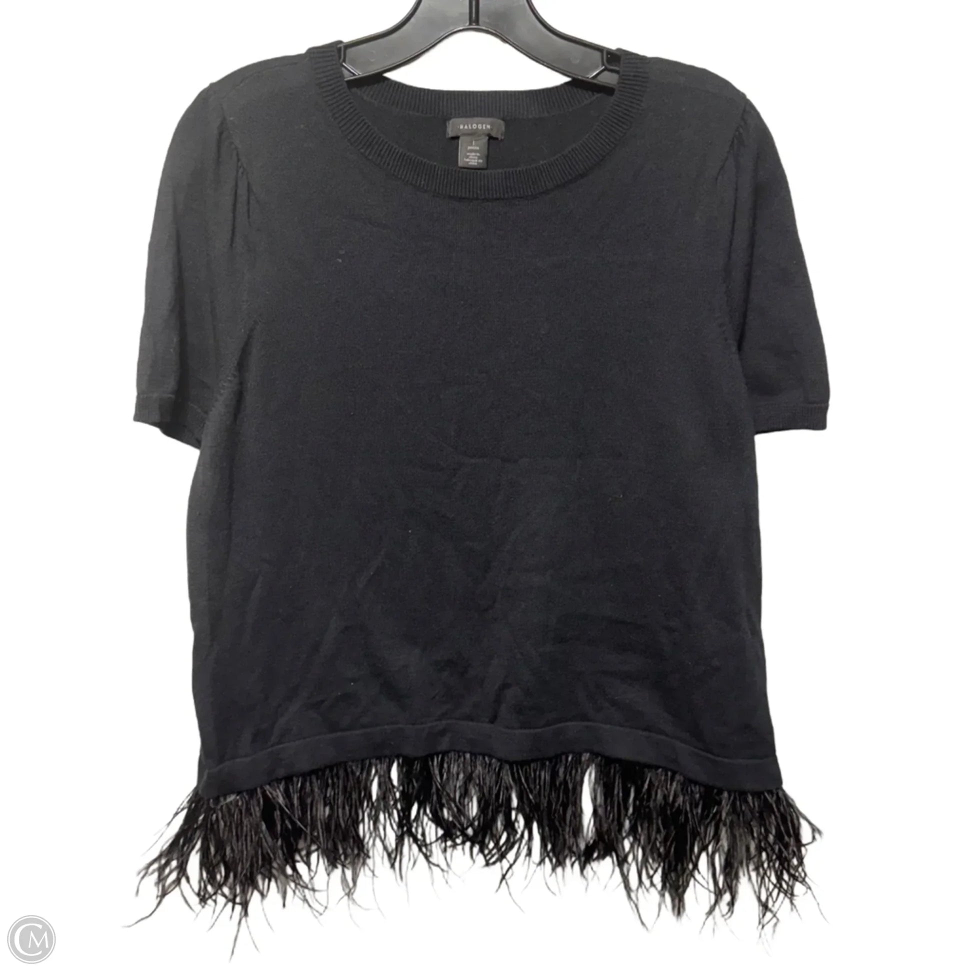 Merino Wool & Ostrich Feather Hem Short Sleeve Sweater By Halogen In Black, Size: S